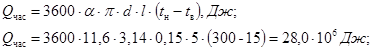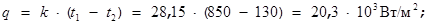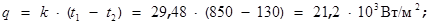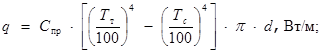Определяем потерю тепла излучением от боковой поверхности трубы в кирпичном канале 0,3х0,3м: