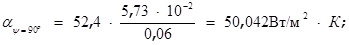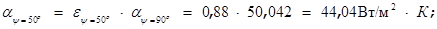 Коэффициент теплоотдачи от газов к трубе при поперечном обтекании под углом 50о :