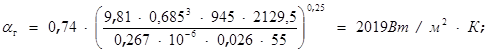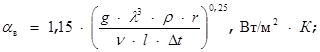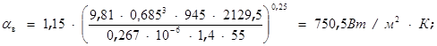 1. Определяем коэффициент теплоотдачи для вертикальной трубки по формуле:
