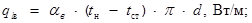 Коэффициент теплоотдачи от поверхности трубы к воздуху: