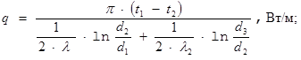 л2 – коэффициент теплопроводности асбестовой изоляции (волокна) л2 = 0,88Вт/м · К;