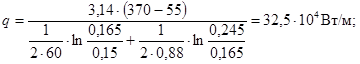 Наружный диаметр изоляции d3 = d2 + 2 ·д = 0,165 + 2 ·0,04 = 0,245м