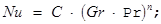 где Nu – критерий Нуссельта для воздуха при свободной конвекции с поверхности паропровода: