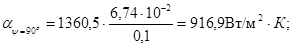 Коэффициент теплоотдачи от газов к трубе при поперечном обтекании под углом 90о :