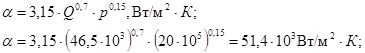 Так как Q = 46,5кВт/м2 < qпр =3282кВт/м2 , то в котле происходит пузырьковое кипение пара.