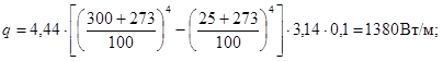 Определяем потерю тепла излучением одним погонным метром стального паропровода в кирпичном канале 0,3х0,3м: