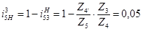 - передаточное отношение от 5-го звена к водилу, при неподвижном третьем звене