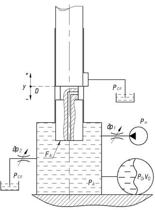 2) в случае разомкнутого управления электрогидравлическим вибратором (отсутствие главной обратной связи) шток поршня будет “проваливаться”, так как установить и поддерживать, с необходимой точностью, величину давления в полости поджатия невозможно.