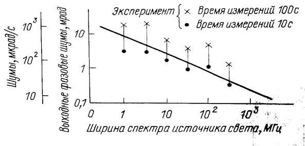 На рис. 9 представлены результаты эксперимента, показывающие, как по мере расширения спектра излучения повышается разрешающая способность волоконно-оптического гироскопа. Таким образом, в волоконно-оптических гироскопах уменьшение когерентности источника света эффективно для снижения не только шумов расстояния Рэлея, но и шумов эффекта Керра.