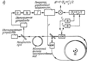 Рис.13, а. Структурная схема волоконно-оптического гироскопа с изменением частоты |