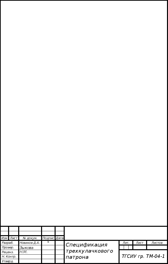 | 010 | токарная | 1.Подрезать торец 2. точить наружную пов-ть 3.точить внутр. Фаску 1*45є | Станок токарно-винторезный 16К20, Патрон 7100-0007 ГОСТ 2675-80 |