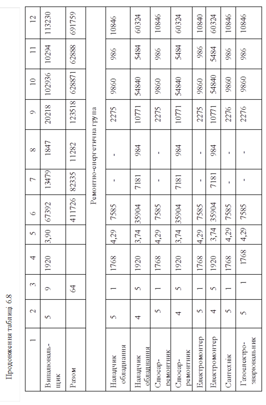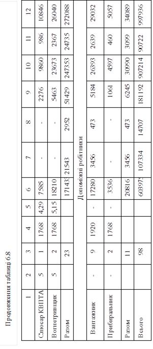 - заробітна плата керівників, спеціалістів табл. 6.9