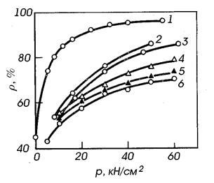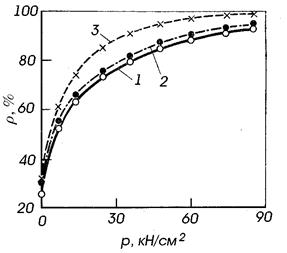 3.1. Зависимость плотности прессовки от давления прессования. |