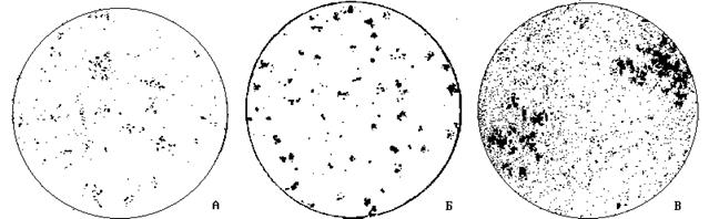 Во взятом примере структурная характеристика выражена в виде процентного содержания мелких зерен, но, зная цену деления окуляра и размер каждого зерна в делениях, можно найти размер зерна в микронах и процентное содержание каждой группы зерен по фракциям.