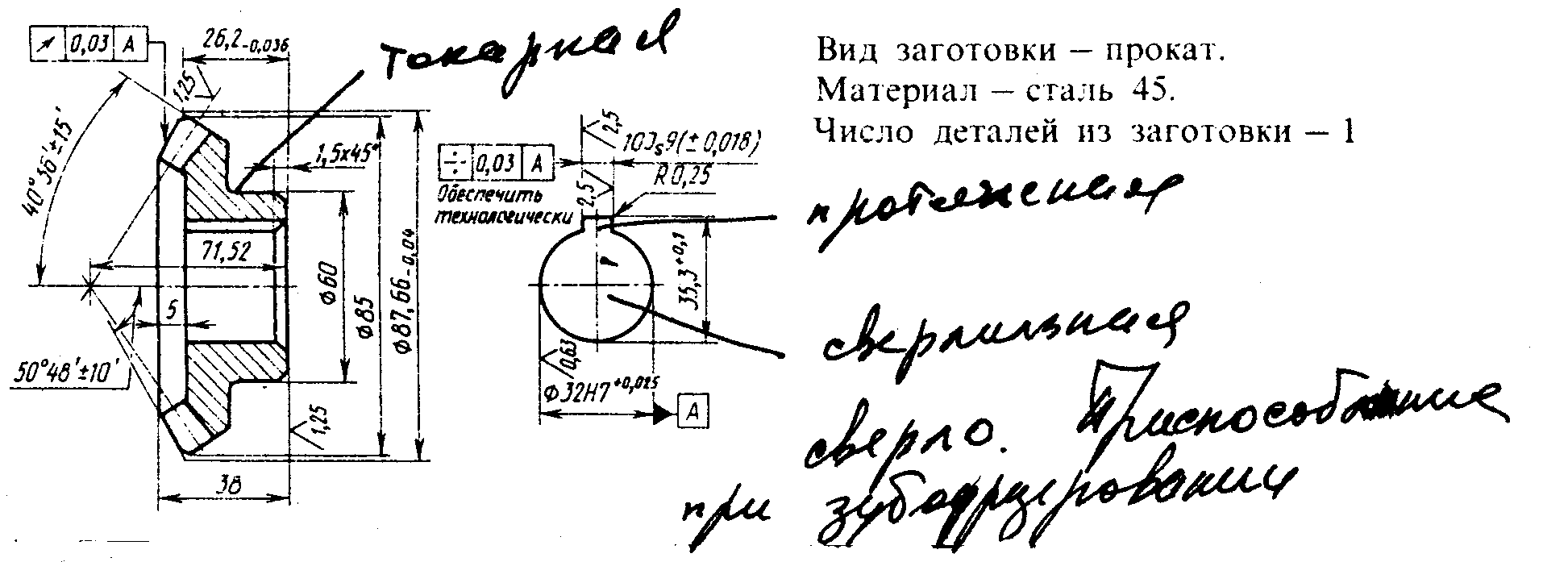Маршрут обработки конического зубчатого колеса прямозубого