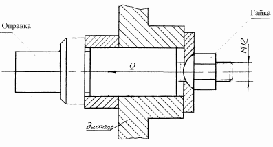 Сила Q создаёт касательную составляющую T силы резания; с учётом коэффициента трения поверхности конуса о стенки втулки m имеем: