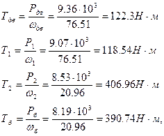 Определяем вращающий момент электродвигателя и вращающие моменты на всех валах привода: