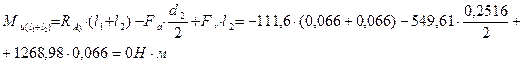Опасными являются два сечения: под левым подшипником и под шестерней. Они опасны, т.к. сложное напряженное состояние (изгиб с кручением), изгибающий момент значительный.