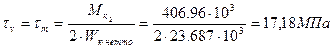 Коэффициент запаса прочности по касательным напряжениям по формуле: