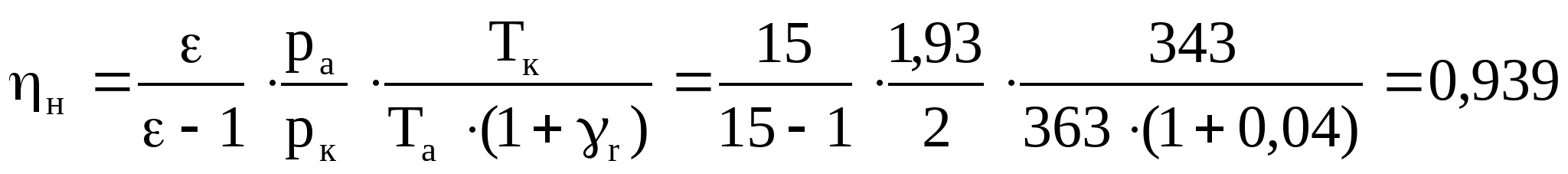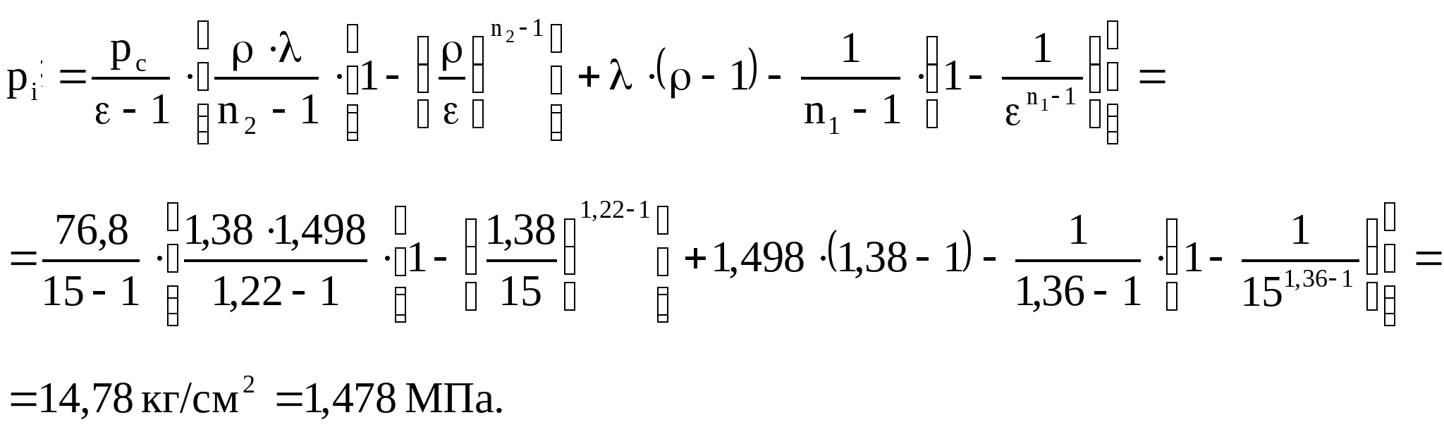 Учитывая неполноту индикаторной диаграммы, среднее индикаторное давление будет равно: