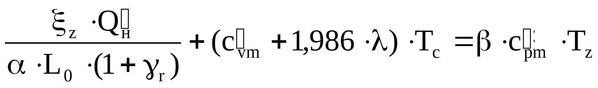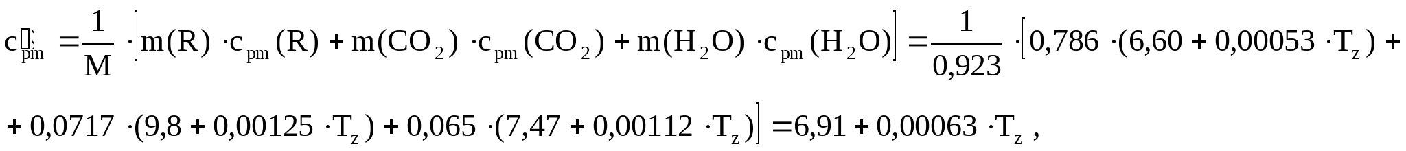 ккал/кгград – средняя мольная теплоёмкость смеси газов с воздухом.