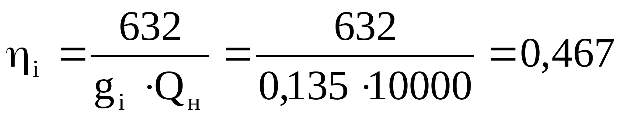 где 632 – тепловой эквивалент работы 1 л.с. в течение часа.