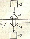 В оптических влагомерах используется связь между влажностью вещества и потоком отраженного от него излучения. Для получения наибольшей чувствительности применяют излучение в инфракрасной области спектра, которое создается источником. Отраженный анализируемым материалом световой поток направляется собирающим устройством на приемник. Чем больше влажность материала, тем лучше он поглощает инфракрасное излучение и тем меньше величина отраженного потока.