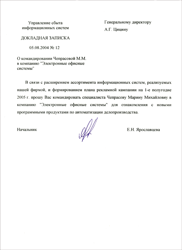Докладная записка – документ, адресованный руководству и излагающий какой-либо вопрос с выводами и предложениями составителя.