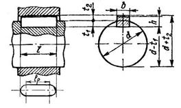 Шпонки рассчитывают на срез по касательным напряжениям и смятие по нормальным напряжениям, однако проверку проводят только по напряжениям смятия, которые на гранях шпонки не должны превышать допускаемого, т.е. должно выполняться условие