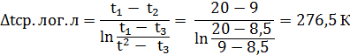 – средняя логарифмическая разность температур воздуха и хладогента или рассола, ºС.