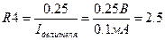 Делитель на R3-R4 должен обеспечивать на инвертирующем входе компаратора DA1 напряжение 0.25 В – по середине уровня входных сигналов. Через делитель должен течь ток минимум в 10 раз больший, чем входной ток компаратора – это получается 0.1 мА. Из этого значения тока делителя и требуемого напряжения вычислим номиналы резисторов.