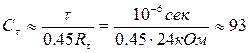 Для одновибратора 555АГ5 максимальное рекомендуемое значение R τ = 24 кОм. Поэтому выбираем R11, R12, R17 из стандартного ряда номиналов Е24 – 24 кОм. Для выполнения своих функций одновибратор DD7.2 должен формировать импульсы длительностью 1 мкс, поэтому: