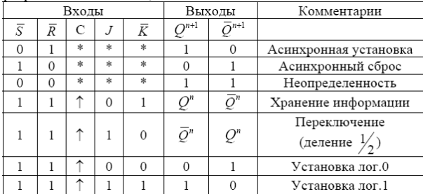 Таблица состояний JK-триггера 1533ТВ15: