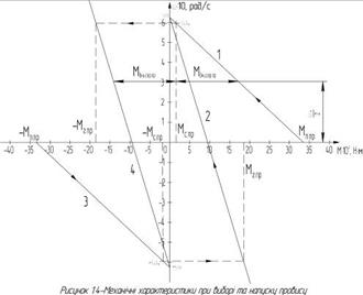 – розгін (1–2), рушення з усталеною швидкістю (2–3) і гальмування (3–4) привода при виборі слабини (провису) каната;