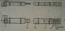Общая схема конвейера этого типа аналогична рассмотренной выше. Он состоит из головки, башмака, цепи с ковшами и стальных труб.