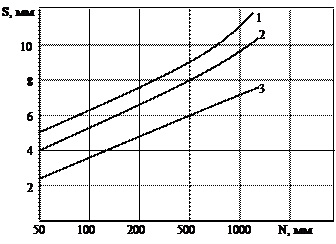 По этим причинам целесообразно выполнять стенки отливок наименьшей толщины, которая допускается условиями литья и прочностью детали. На рис. 2.1 приведены графики минимальной толщины стенок S, мм, для различных литейных сплавов в зависимости от приведенного габаритного размера детали N, мм, где