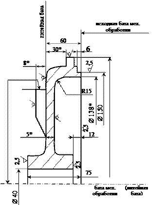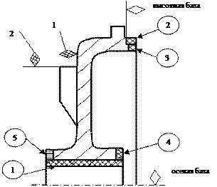 Для черновой базы нельзя использовать поверхность, подвергаемую механической обработке. Однако, при дальнейшей обработке детали черновая поверхностная база может быть безвозвратно уничтожена механической обработкой относительно другой базы установки детали на станке. От базы механической обработки координируют все остальные механически обрабатываемые поверхности.
