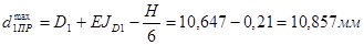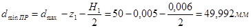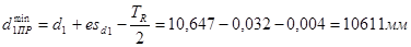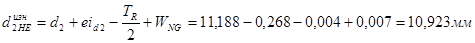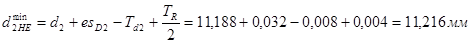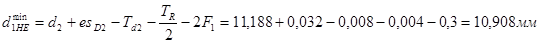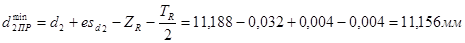 В соответствии с ГОСТ 24997-81 (СТ СЭВ 2647-80 ) /4,с.67/ определяем наименьшие предельные диаметры резьбы калибра. Нижнее отклонение при этом будет равно нулю, а верхнее – положительным и равным по величине допуску на изготовление калибра.