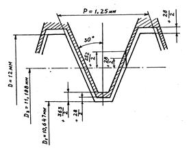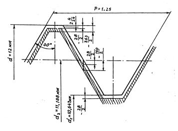 По ГОСТ 24705-81 /1,с.144/ определяем основные размеры резьбы М12 х1,25 -8 g :