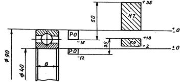 2) для местною нагруженного кольца основное отклонение выбирают по /I, с.285/. а номер квалитета - в зависимости от принятого класса подшипника. В данном примере основное отклонение отверстия в «корпусе» Н, для О класса допуск по JТ7. Таким образом, после допуска отверстия в соединении должно быть выполнено по Н 7;