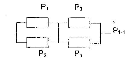 P1-4 =P1-2 *P3-4 =[1-(1-P1 )(1-P2 )]*[(1-(1-P3 )(1-P4 )]