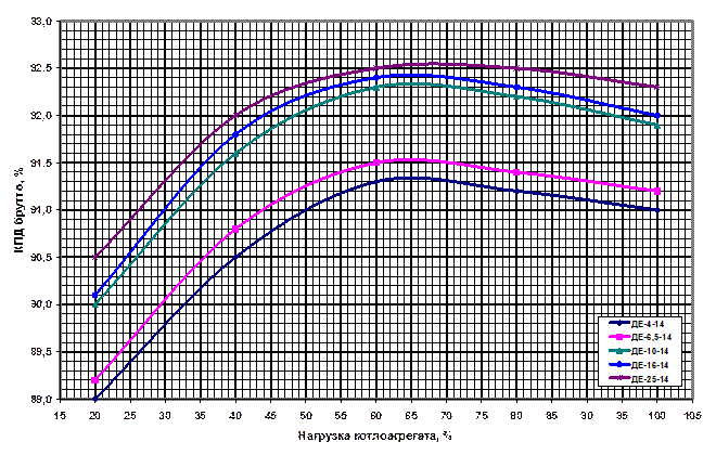 Рисунок 3. КПД брутто котлов типа ДЕ