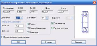 При использовании программы КОМПАС (рис.3), можно получить изображение подшипника в разрезе. Размеры и условные обозначения указаны в Таблице 1.