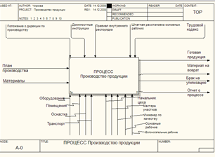 Анализируя процесс изготовления подшипников, был разработан регламент процесса производства и выбраны управляющие и ресурсные обеспечения подпроцессов.