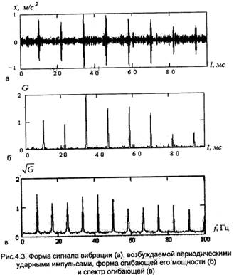 Вибрация гидродинамического происхождения вносит существенный вклад и в высокочастотную вибрацию подшипников качения. Но если при работе подшипника в какие-то моменты происходит разрыв масляной ..пленки и тело качения ударяется о неподвижное кольцо подшипника, возникает случайная вибрация ударного происхождения, максимум энергии которой приходится на частоты в несколько раз выше, чем. у вибрации гидродинамического происхождения. При наличии неровностей на поверхностях качения часто возникает и ударное взаимодействие поверхностей качения без полного разрыва масляной пленки. В этом случае частотный максимум энергии вибрации находится где-то посередине. Как правило, под вибрацией подшипников, возбуждаемой упругими ударами при разрывах масляной пленки, понимается вибрация с энергетическим максимумом, приходящимся на частоты 30-60 кГц.