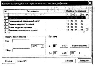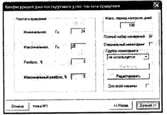 - скорость вращения, Гц; для первого стенда -24,5 Гц, второго -14,75 Гц, пятого - 14,3 Гц (при повторной диагностике того же спектра повторный ввод частоты вращения не требуется, если нет необходимости провести повторную автоматическую диагностику, но с уточненной частотой вращения);