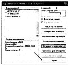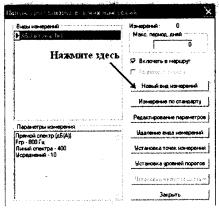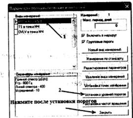 2. Щелкнув левой кнопкой мыши, выделите вид измерения, для которого хотите установить пороги (1) (рис.52). После чего нажмите кнопку Установка уровней порогов (2).