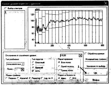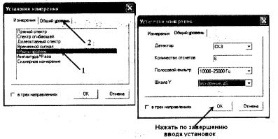 36. При установке порогов общего уровня (OVLV) в появившемся окне будет отображено измеренное значение (1) или несколько значений, если предварительно проводился ряд замеров.