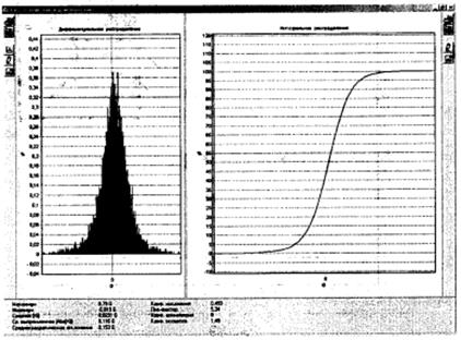 В окне Статистические характеристики (рис.38) будут отражены дифференциальный и интетрапьный законы распределения значений величин в измеренном временном сигнале. В нижней части окна приведены параметры законов распределения.