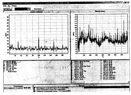 - в правой центральной части история появления выбранной частотной составляющей (после проведения более одного измерения);